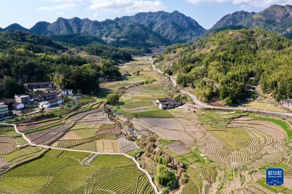 2月23日拍攝的福州市永泰縣白云鄉(xiāng)白云村田野景觀(無人機照片)。