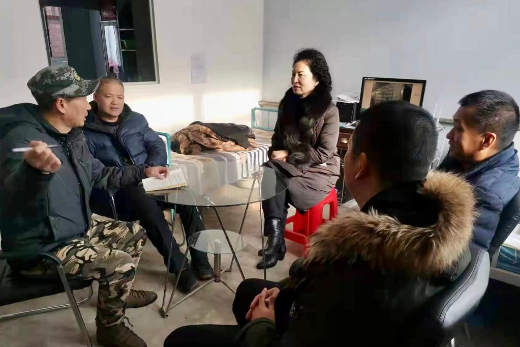 2022年2月16日,冉慧(右五)和天山堡村的村民座談,聽取大家的意見建議。新華社發(fā)(冉川攝)