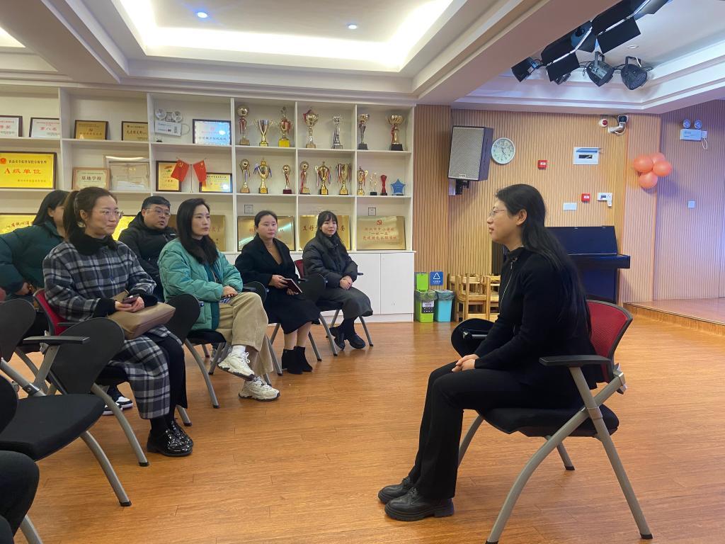 陳瑋(右)日前在衢州市實驗幼兒園荷花園區(qū)調(diào)研幼兒教育。新華社記者黃筱攝