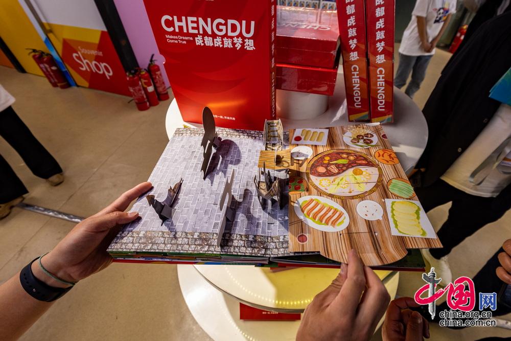 為成都大運會量身定制的立體書系列文創(chuàng)產品,展示了獨特的藝術風格和創(chuàng)意設計。原創(chuàng)內容包括對大運會場館、以及成都本地文化和旅游景點的介紹。中國網記者 鄭亮攝