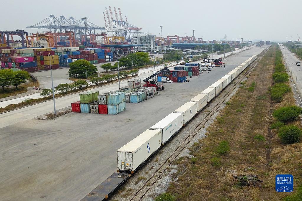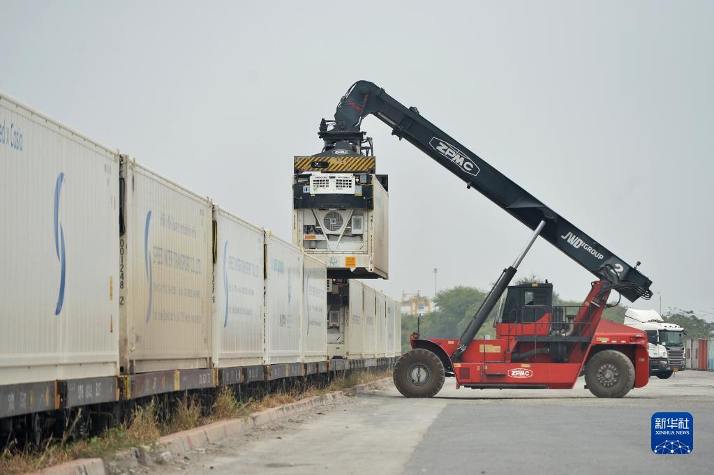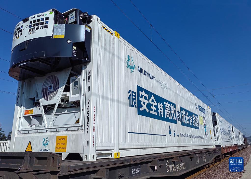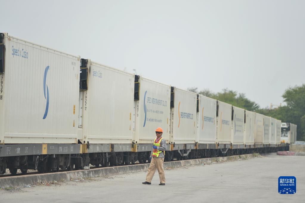 4月19日,裝載著來(lái)自泰國(guó)等地?zé)釒睦滏溂b箱到達(dá)昆明東站。新華社發(fā)(秦文璐 攝)