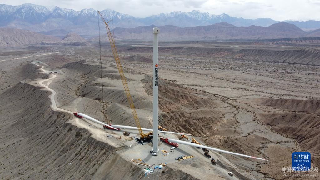 4月22日凌晨,位于素有“萬(wàn)山之州”之稱的新疆克孜勒蘇柯?tīng)柨俗巫灾沃轂跚】h的龍?jiān)礊跚?00兆瓦風(fēng)電項(xiàng)目完成首臺(tái)風(fēng)機(jī)吊裝。