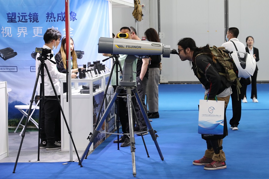 5月11日,觀眾體驗熱成像望遠(yuǎn)鏡。中國日報記者 王壯飛 攝