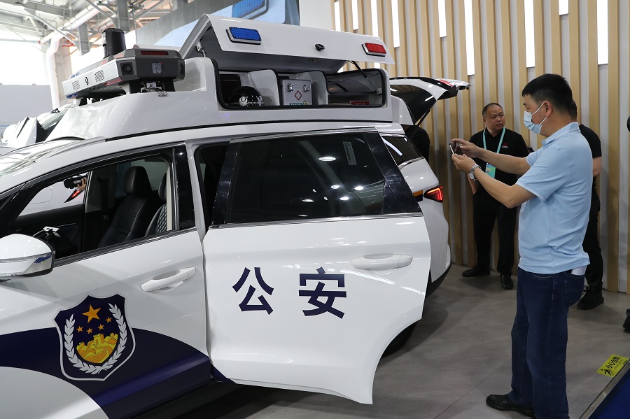5月11日,觀眾在警博會參觀警用汽車。中國日報記者 王壯飛 攝