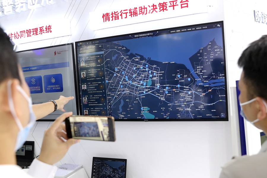 5月11日,參展商展示情指行輔助決策平臺。中國日報記者 王壯飛 攝