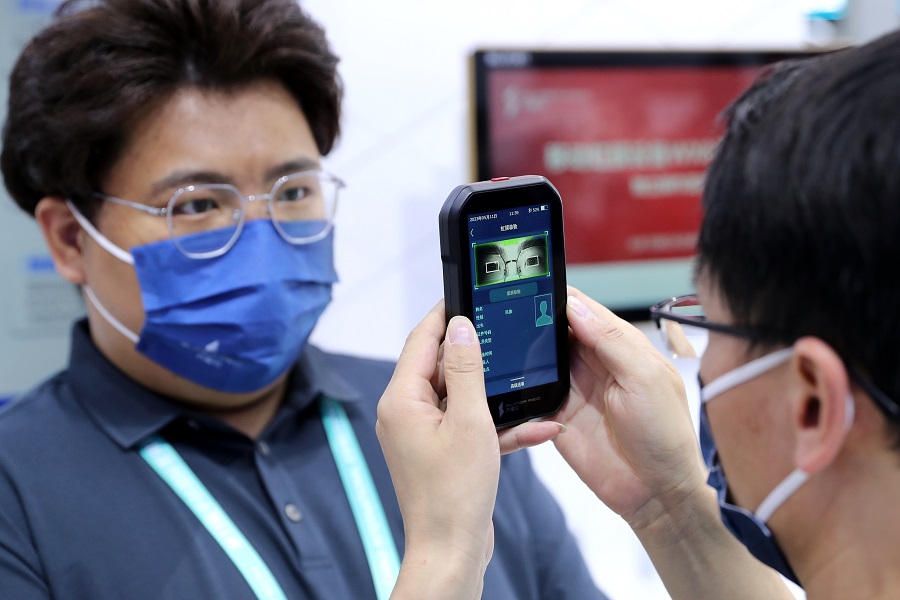 5月11日,參展商展示萬里紅移動虹膜設(shè)備。中國日報記者 王壯飛 攝