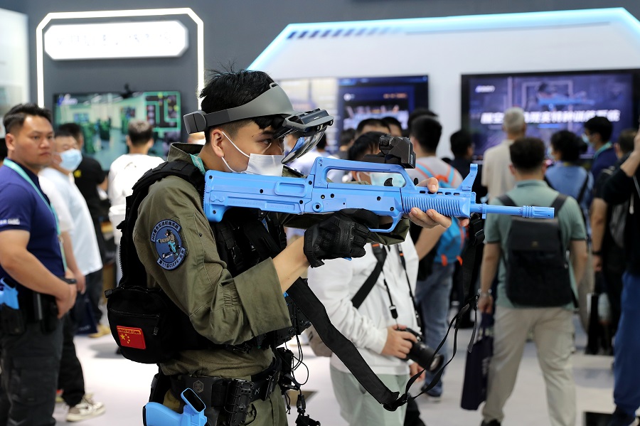 5月11日,參展商展示警務(wù)實戰(zhàn)訓(xùn)練系統(tǒng)。中國日報記者 王壯飛 攝