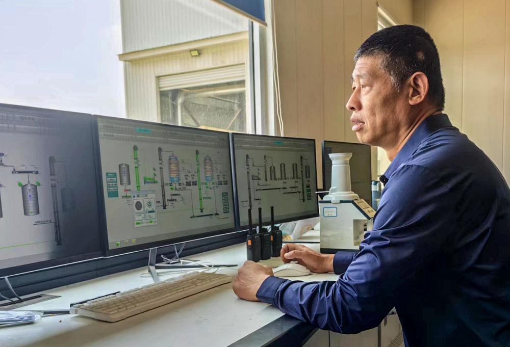 6月13日,在山東省齊河縣晏城街道糧食烘干倉(cāng)儲(chǔ)服務(wù)中心,工作人員監(jiān)測(cè)糧食烘干塔運(yùn)行情況。新華社記者 陳灝 攝