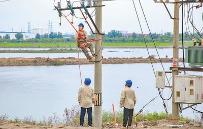 日前,國網(wǎng)北京石景山供電公司搶修人員在北京市房山區(qū)羊頭崗村搶修受損電力線路。李 強(qiáng)攝