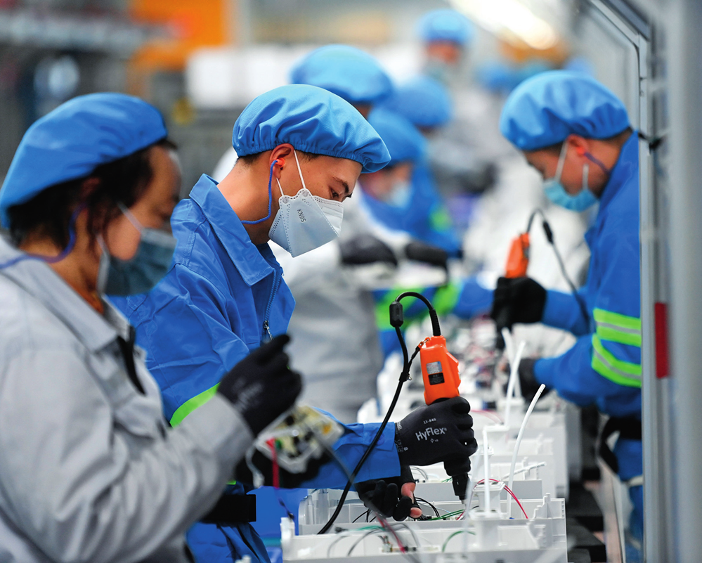 工人在浙江沁園水處理科技有限公司生產(chǎn)車間組裝家用凈水產(chǎn)品(2023年3月22日攝)。黃宗治攝/本刊