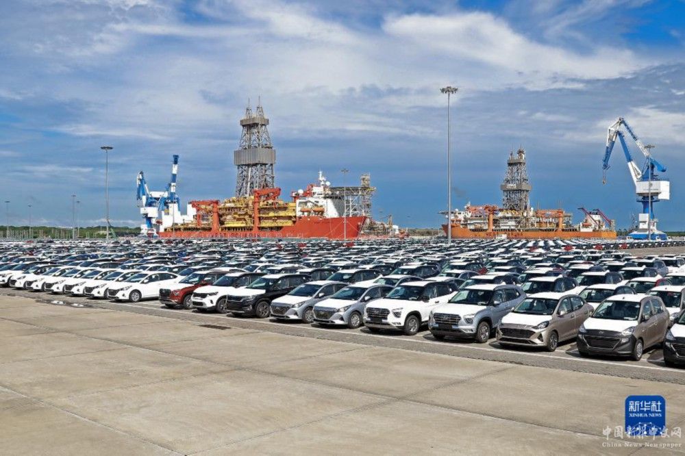 這是2023年7月22日拍攝的北部灣港欽州自動(dòng)化集裝箱碼頭(無(wú)人機(jī)照片)。新華社記者 曹祎銘 攝