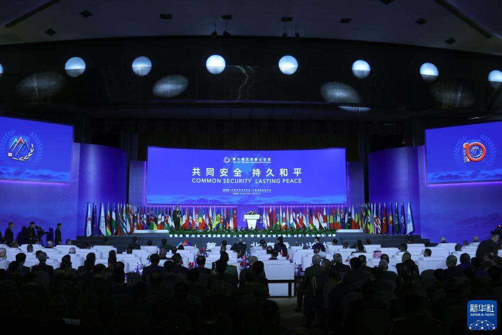 這是10月30日拍攝的開幕式現(xiàn)場。當(dāng)日,第十屆北京香山論壇在北京國際會議中心開幕。本屆論壇的主題是“共同安全、持久和平”。新華社記者 李杰 攝