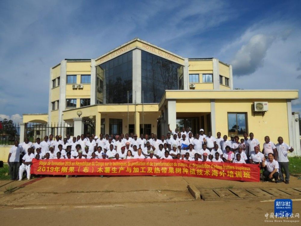 在剛果(布)首都布拉柴維爾附近的中國援剛果(布)農(nóng)業(yè)技術(shù)示范中心,中國熱帶農(nóng)業(yè)科學(xué)院專家為當(dāng)?shù)剞r(nóng)民開辦剛果(布)木薯生產(chǎn)與加工及熱帶果樹種植技術(shù)海外培訓(xùn)班(2019年11月19日攝)。2007年該示范中心獲批建設(shè)以來,中國熱科院多名專家先后常駐示范中心,開展農(nóng)業(yè)種植和禽類養(yǎng)殖示范,全方位培訓(xùn)農(nóng)業(yè)知識與技能。(中國熱帶農(nóng)業(yè)科學(xué)院供圖)