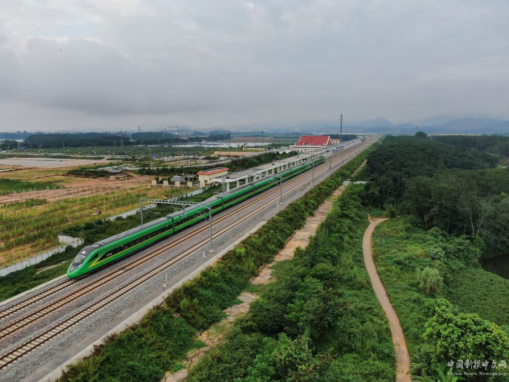 2023年10月22日,動車從位于云南省景洪市勐罕鎮(zhèn)的中老鐵路橄欖壩站駛出。