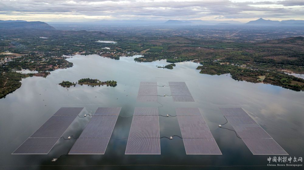 這是2022年12月8日在泰國烏汶府詩琳通水庫拍攝的浮體光伏項目。