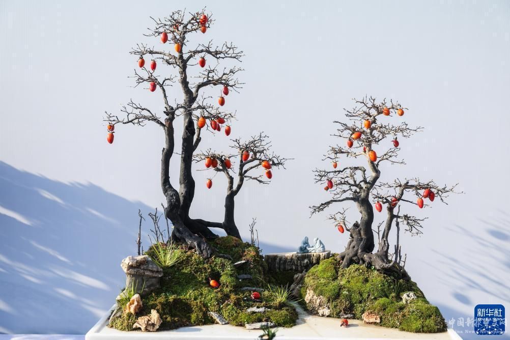 11月25日,第二十一屆中國(金華)花卉苗木博覽會上展示的盆景。