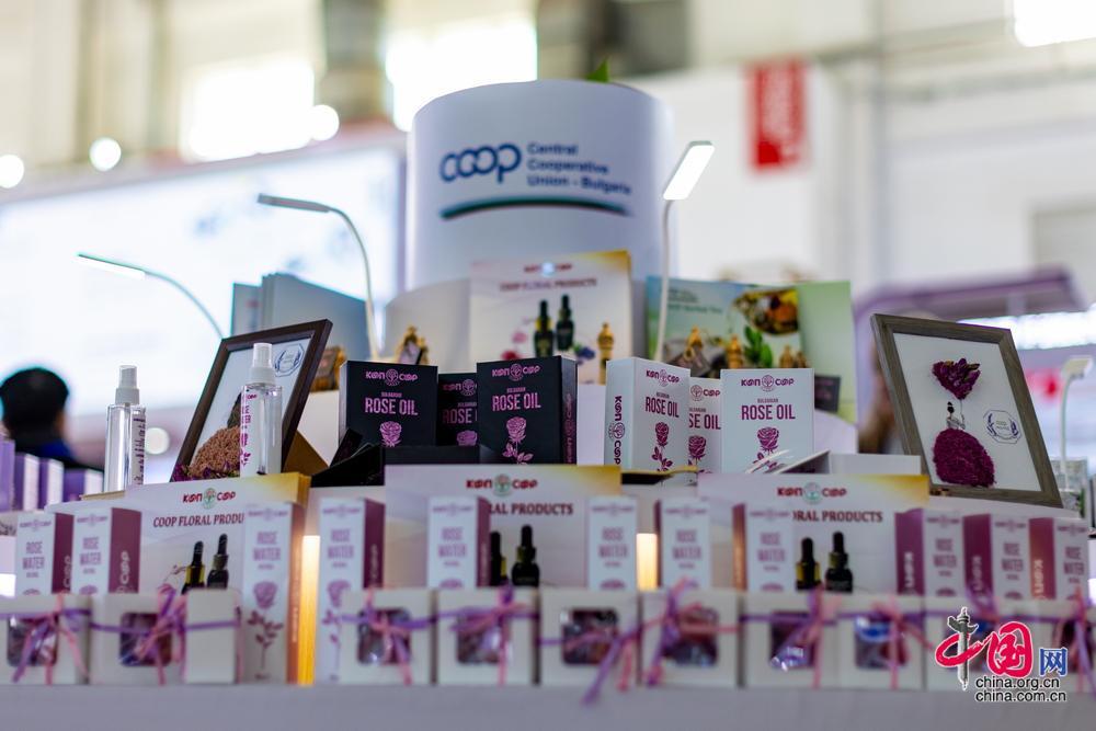 來自保加利亞的特色玫瑰產(chǎn)品在綠色農(nóng)業(yè)鏈展區(qū)內(nèi)展出。中國網(wǎng)記者 鄭亮攝