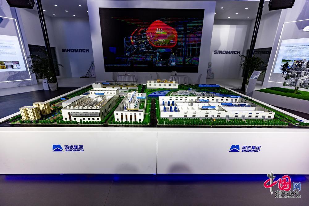 國機(jī)集團(tuán)展位上展示的中國農(nóng)機(jī)院智能生產(chǎn)工廠沙盤模型。中國網(wǎng)記者 鄭亮攝