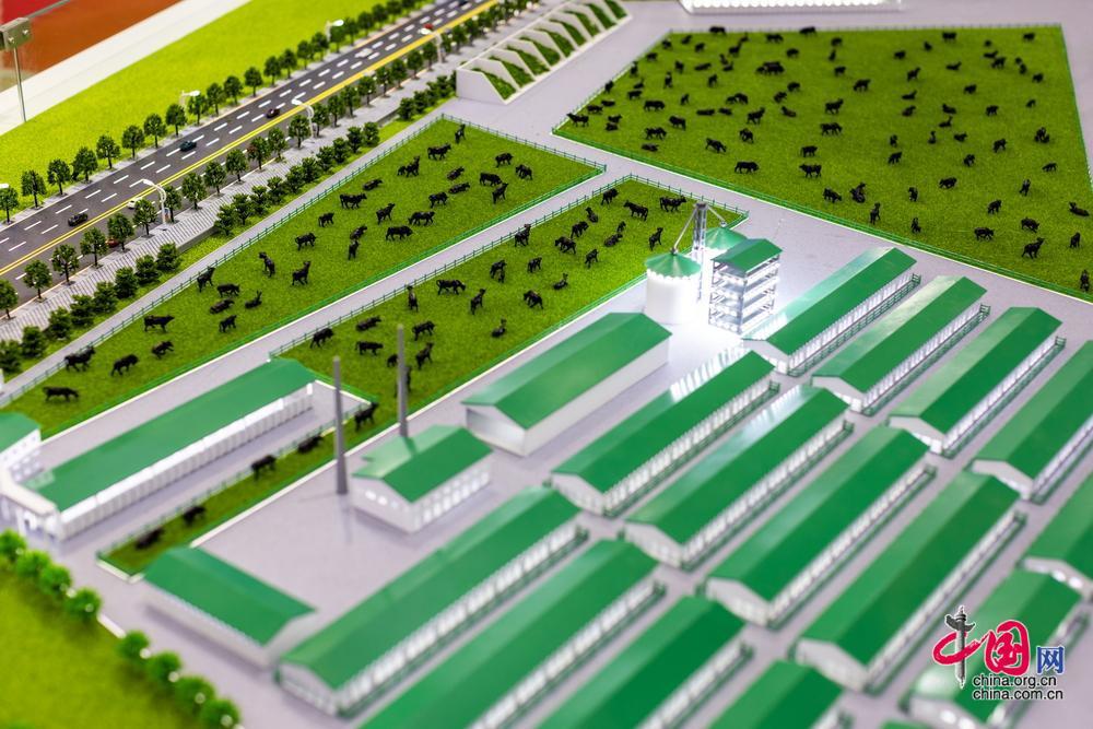 綠色農(nóng)業(yè)鏈展區(qū)內(nèi)展示的“龍江和牛”養(yǎng)殖基地沙盤。中國網(wǎng)記者 鄭亮攝