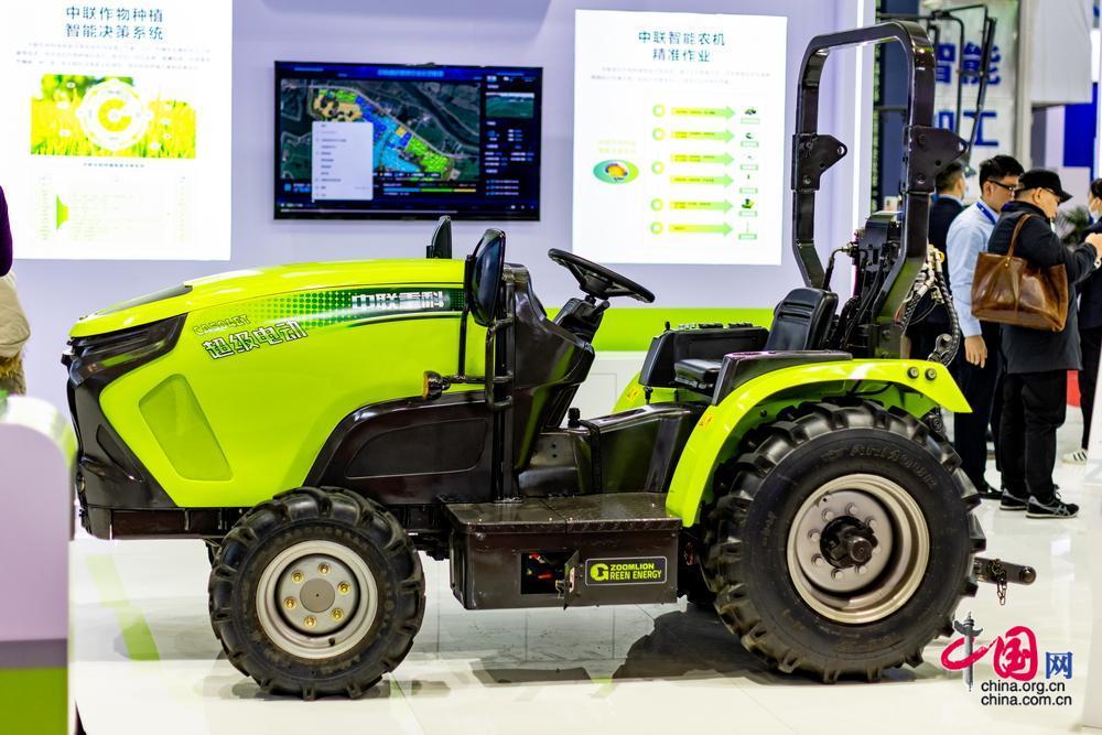 中聯(lián)重科展出的電動(dòng)大棚拖拉機(jī)。中國網(wǎng)記者 鄭亮攝