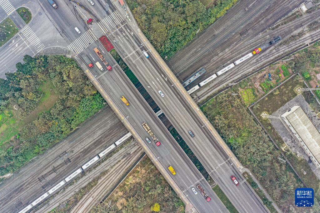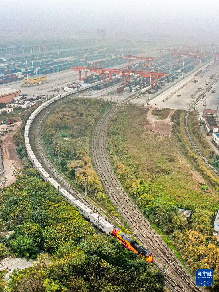12月29日,陸海新通道中老泰跨境鐵路雙向班列(中國(guó)重慶—老撾萬(wàn)象—泰國(guó)曼谷)在重慶團(tuán)結(jié)村中心站順利發(fā)車(無(wú)人機(jī)照片)。