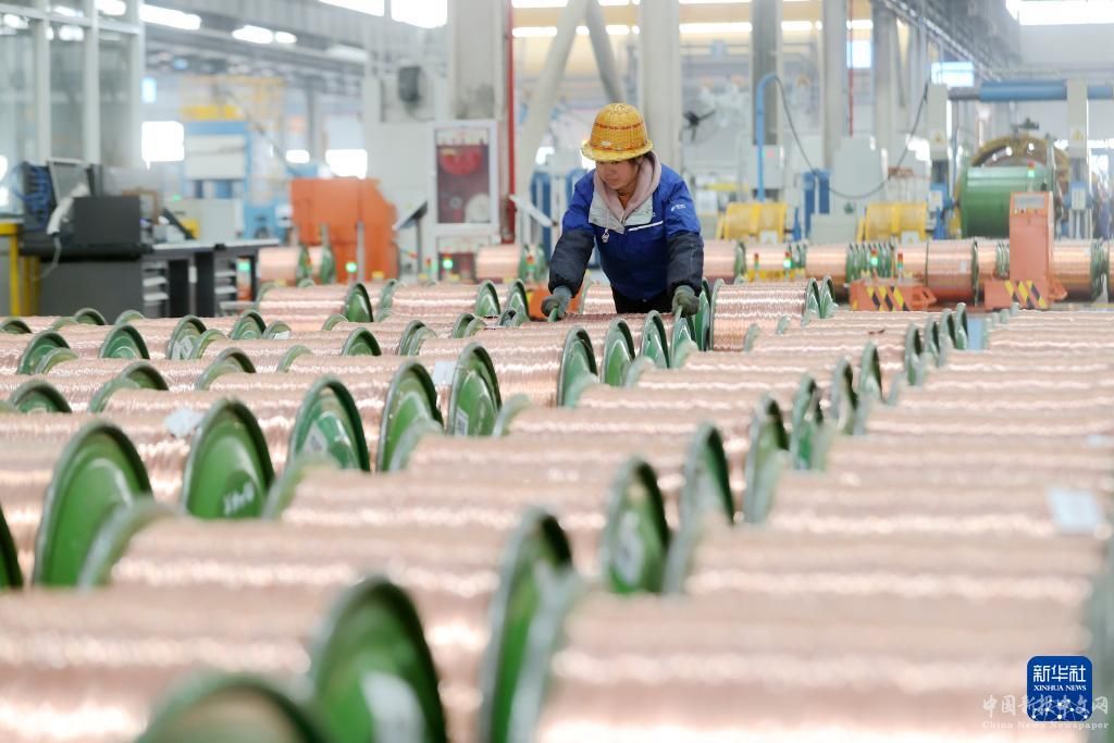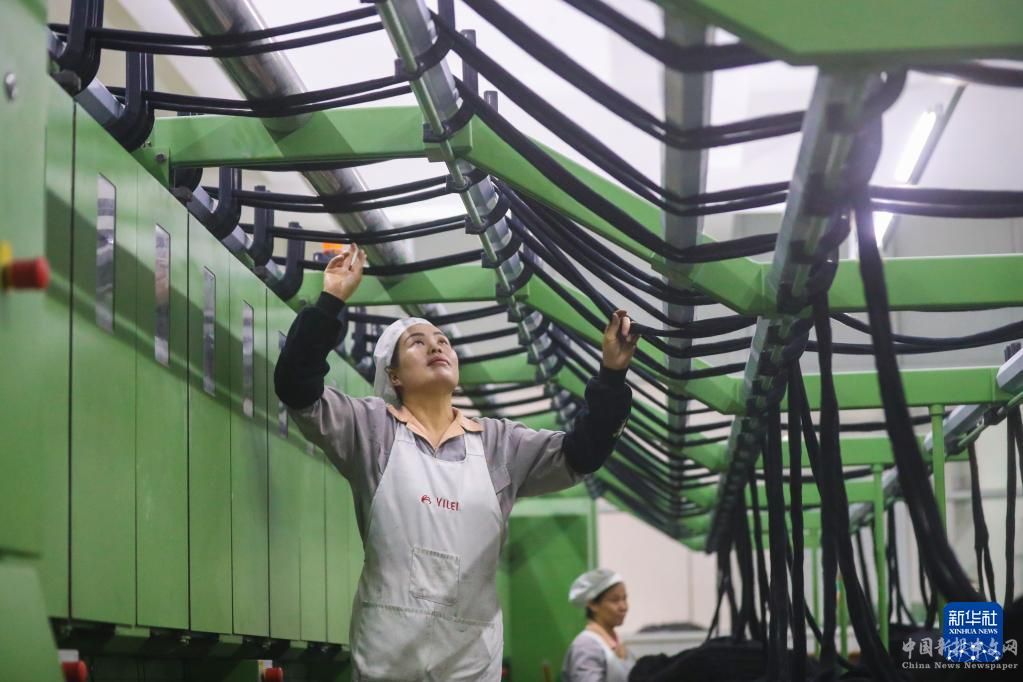 1月4日,在浙江省湖州市德清縣乾元鎮(zhèn)的浙江物產(chǎn)中大線纜有限公司生產(chǎn)車間,工人在趕制特種線纜訂單產(chǎn)品。