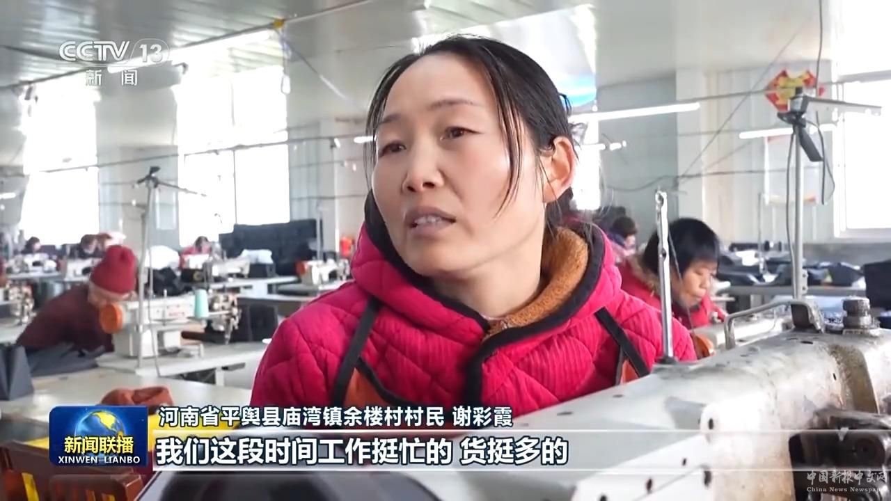 河南省平輿縣廟灣鎮(zhèn)余樓村村民 謝彩霞:我們這段時(shí)間工作挺忙的,貨挺多的。一天能掙個(gè)200來(lái)塊錢,手快的話又掙得更多一點(diǎn)。