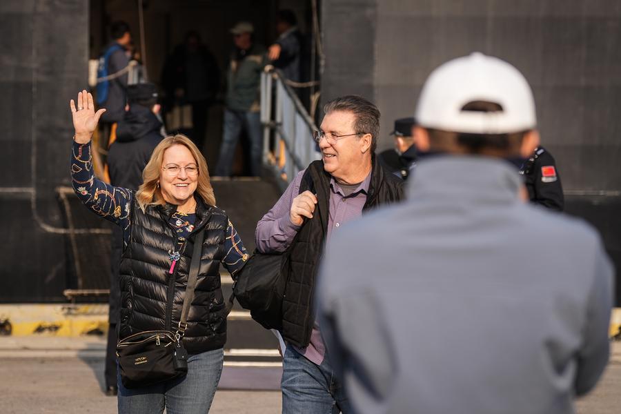 為了更好服務(wù)游客,中國多地采取一系列措施。天津邊檢總站東疆邊檢站制定工作預(yù)案,開足查驗(yàn)通道,做好“翠德丹”號游客的通關(guān)保障。