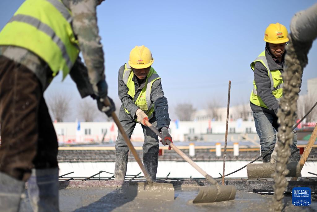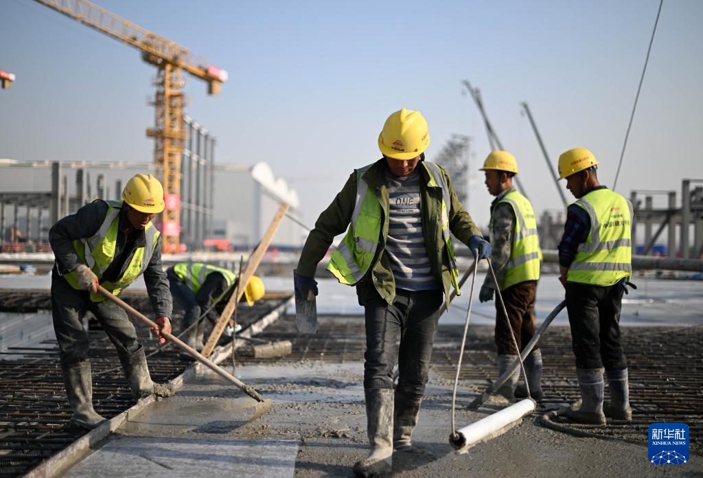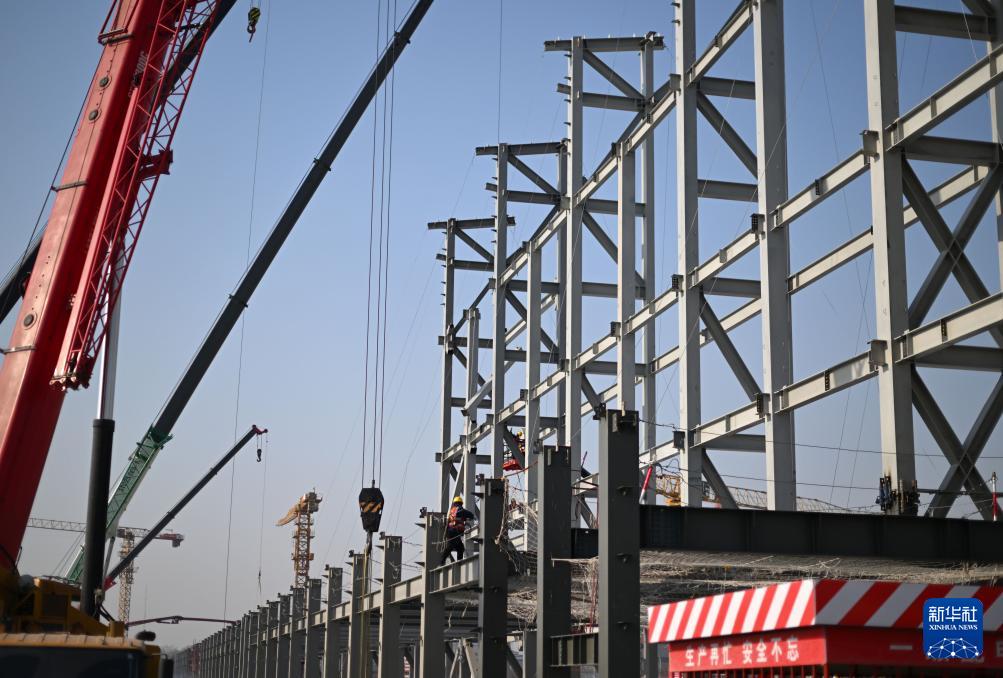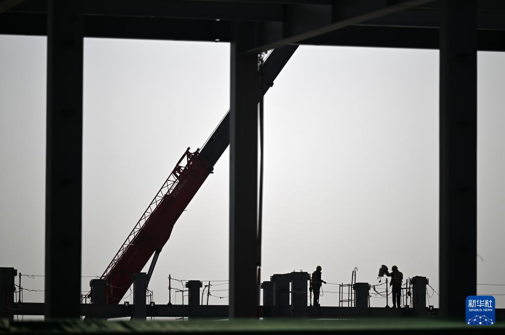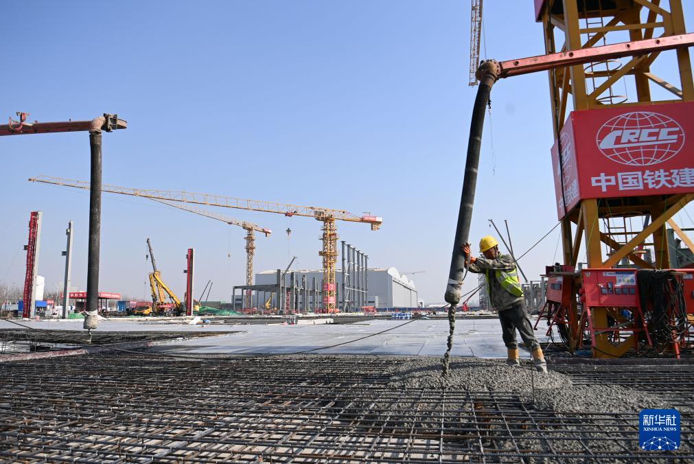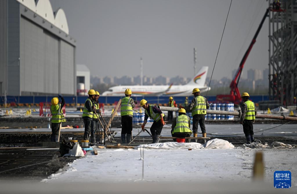 3月31日,工人在空客天津第二條總裝線項目建設(shè)現(xiàn)場施工作業(yè)。