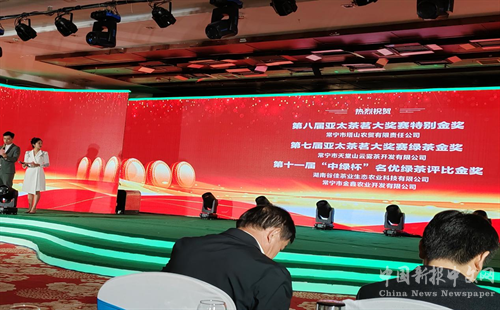 此次推介會,既是共品茶香、共論茶道、共商茶業(yè)的盛會,也是推介茶品、推廣茶事的舞臺。推介會上碩果累累,湖南谷佳茶業(yè)生態(tài)農(nóng)業(yè)科技有限公司與珠海常寧商會、湖南瑤園生態(tài)農(nóng)業(yè)科技發(fā)展有限公司與深圳常寧商會、常寧市興華農(nóng)業(yè)開發(fā)有限公司與上海常寧商會、湖南省瑞豐茗香茶業(yè)有限公司與廣州常寧商會、常寧市天堂山云霧茶開發(fā)有限公司與長沙常寧商會、湖南?,庌r(nóng)業(yè)科技有限公司與東莞常寧商會,分別簽署了“常寧塔山茶”合作意向,為做大常寧茶產(chǎn)業(yè),打響“常寧塔山茶”品牌,助力常寧茶葉產(chǎn)業(yè)品牌綠色發(fā)展方向,筑牢鄉(xiāng)村振興的產(chǎn)業(yè)基礎,譜寫常寧茶產(chǎn)業(yè)高質(zhì)量發(fā)展新篇章!同時,還表彰了2023年度優(yōu)秀企業(yè)、2023年度先進單位,宣布了2022-2023參評獲獎企業(yè)名單。