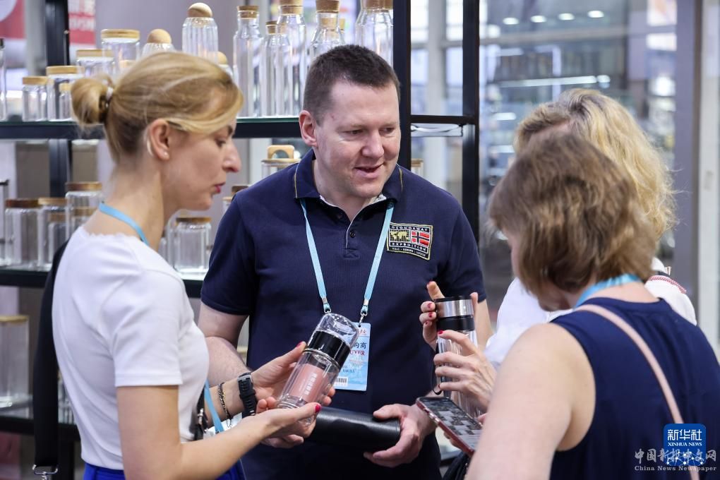 幾位來自波蘭的采購商在第135屆廣交會上了解展品(4月24日攝)。