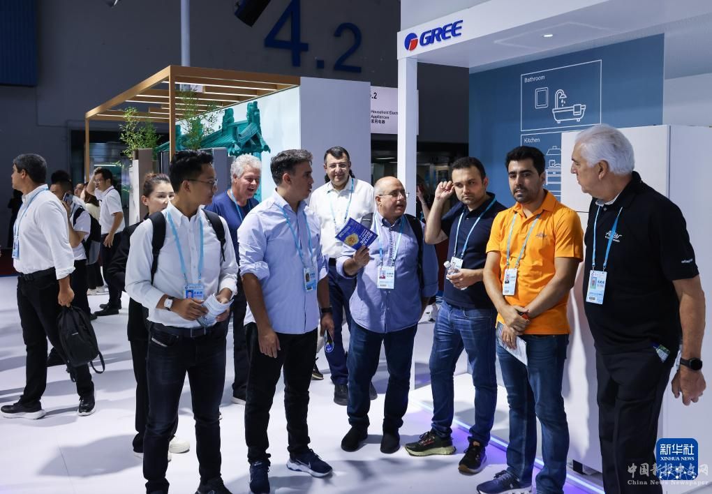 境外采購商在第135屆廣交會智慧生活展區(qū)格力展位前了解中國出口的智能家電(4月15日攝)。
