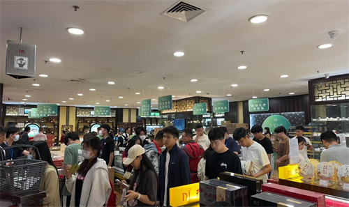 疫情影響后,全球經(jīng)濟低迷、國內(nèi)消費下滑,全國茶葉市場競爭日益激烈。如何創(chuàng)新發(fā)展方式、構(gòu)建新質(zhì)生產(chǎn)力、增強發(fā)展新動能成了整個產(chǎn)業(yè)、每個茶企尋求破局的努力方向。為此,湖南省紅茶產(chǎn)業(yè)發(fā)展促進會和湖南省茶業(yè)協(xié)會組織白沙溪、晉豐厚、谷佳、過山、天門郡、武陵紅、舜帝、瑤嶺、牛角山、九獅寨、月光、蒙洱、惠和堂、不二優(yōu)品、威茗等18家茶葉企業(yè)負責人于4月27-28日前往河南許昌胖東來開展產(chǎn)銷研學活動,希望在進行考察、學習、交流的同時,促進企業(yè)負責人深入了解營銷市場、提升經(jīng)營管理水平,幫助并推動茶企有效對接市場、積極拓展市場??疾煸S昌胖東來時代廣場、天使城后,大家不由得為絡繹不絕的參觀人群好奇、高端靚麗的商城設施