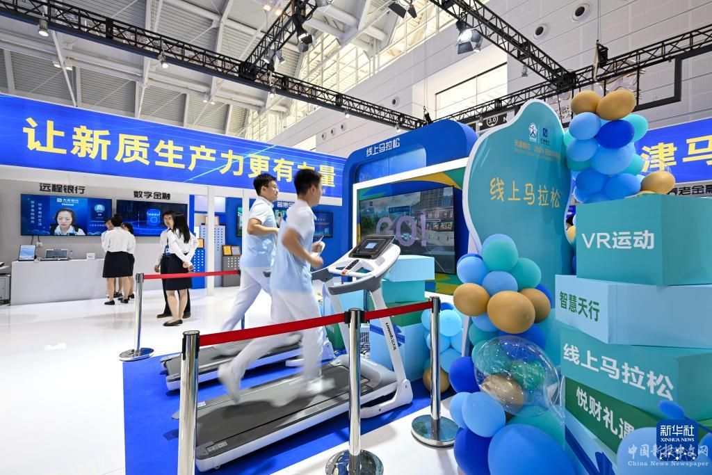 6月20日,人們?cè)诓┯[會(huì)現(xiàn)場(chǎng)體驗(yàn)線上馬拉松競(jìng)賽。