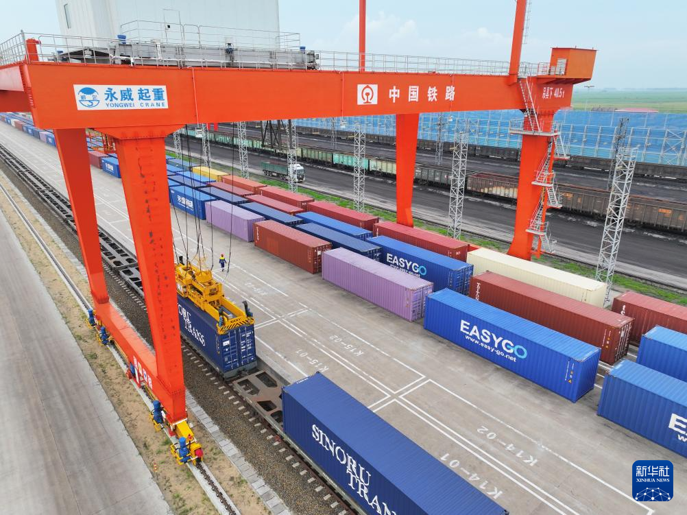 8月6日,中國鐵路哈爾濱局集團(tuán)有限公司內(nèi)蒙古滿洲里站貨運(yùn)車間在對回程中歐班列進(jìn)行卸車作業(yè)。新華社發(fā)(黃旭攝)
