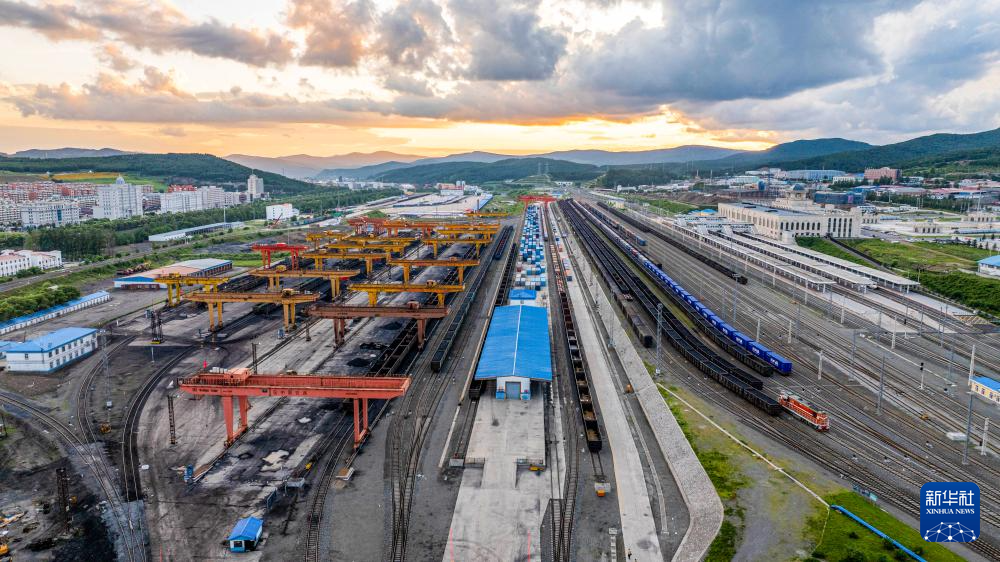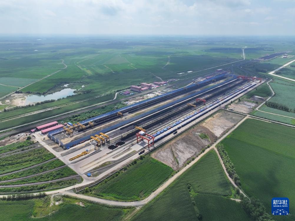 7月29日拍攝的黑龍江綏芬河站北場全貌(無人機(jī)照片)。新華社發(fā)(曲藝偉 攝)