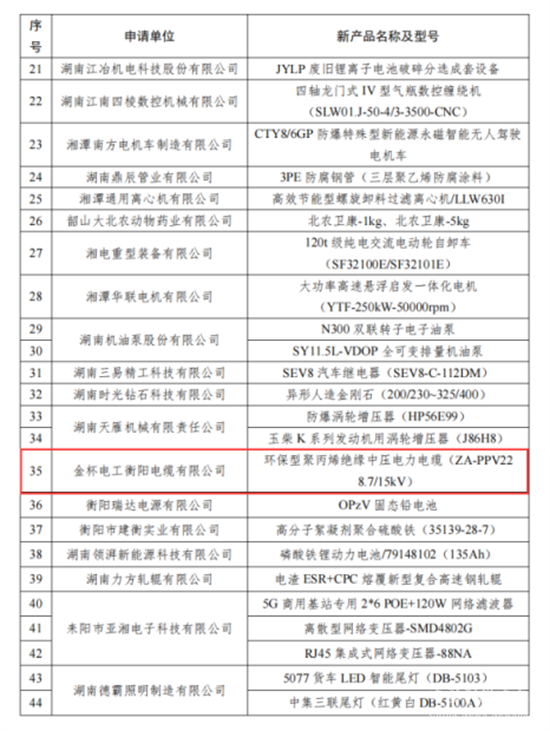 湖南省省級工業(yè)新產(chǎn)品名單。