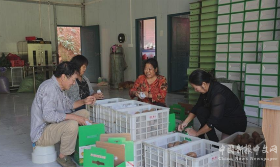 在基地獼猴桃倉(cāng)庫(kù)里,村民們忙著將獼猴桃分揀、包裝、裝箱,準(zhǔn)備發(fā)往長(zhǎng)三角、珠三角等地區(qū)?;乩锓N植的這種黃心獼猴桃品種名為“金艷”,個(gè)頭勻稱結(jié)實(shí),果肉明黃、晶瑩剔透、酸甜適度、維C含量高。多年來(lái),基地獼猴桃一直采用人工除草、施有機(jī)肥等生態(tài)種植方式,結(jié)出的獼猴桃口感更佳,深受消費(fèi)者的青睞,今年基地獼猴桃的總產(chǎn)值預(yù)計(jì)能達(dá)到200多萬(wàn)。