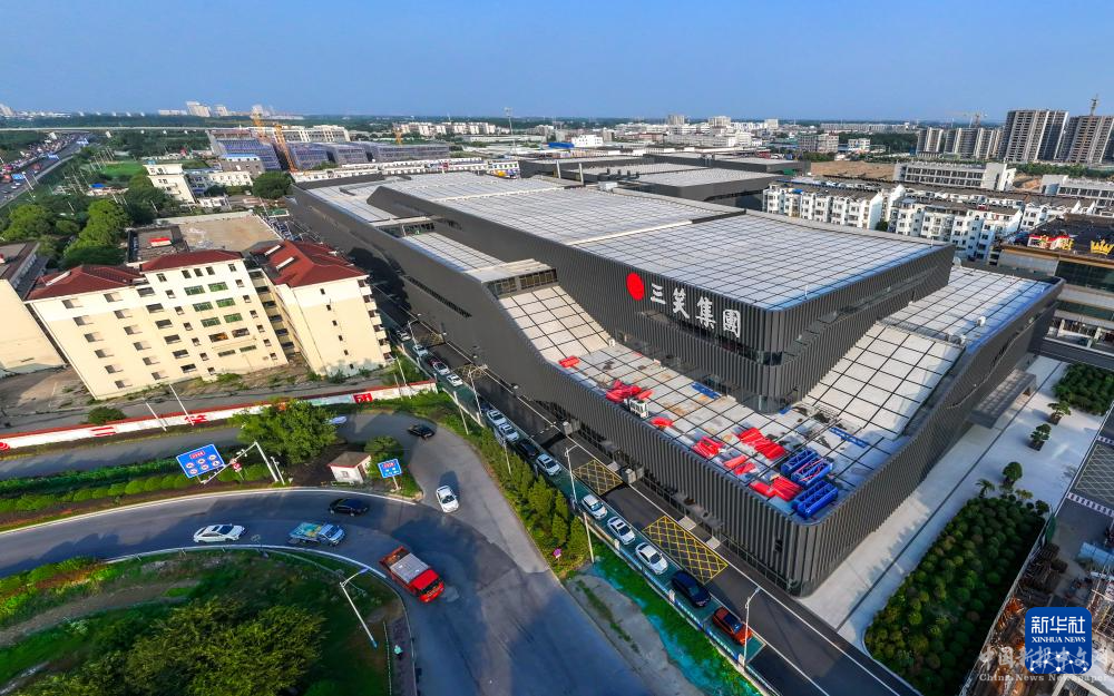 位于揚(yáng)州市杭集鎮(zhèn)的三笑集團(tuán)有限公司綠色智能工廠外景(6月20日攝,無人機(jī)照片)。