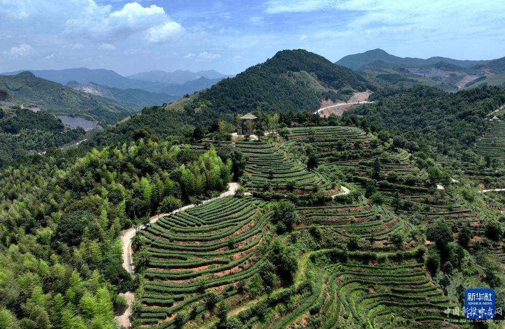 這是6月23日拍攝的福州市羅源縣西蘭鄉(xiāng)國(guó)家級(jí)生態(tài)農(nóng)場(chǎng)內(nèi)的茶山(無人機(jī)照片)。