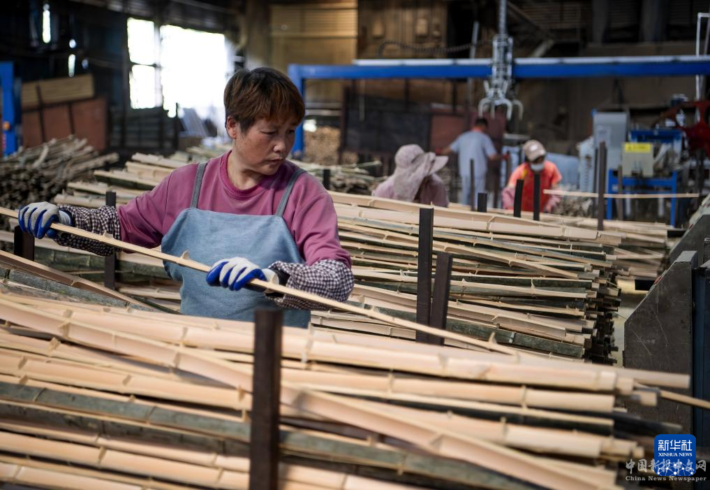 在福建億森竹業(yè),工人在切割毛竹(6月23日攝)。