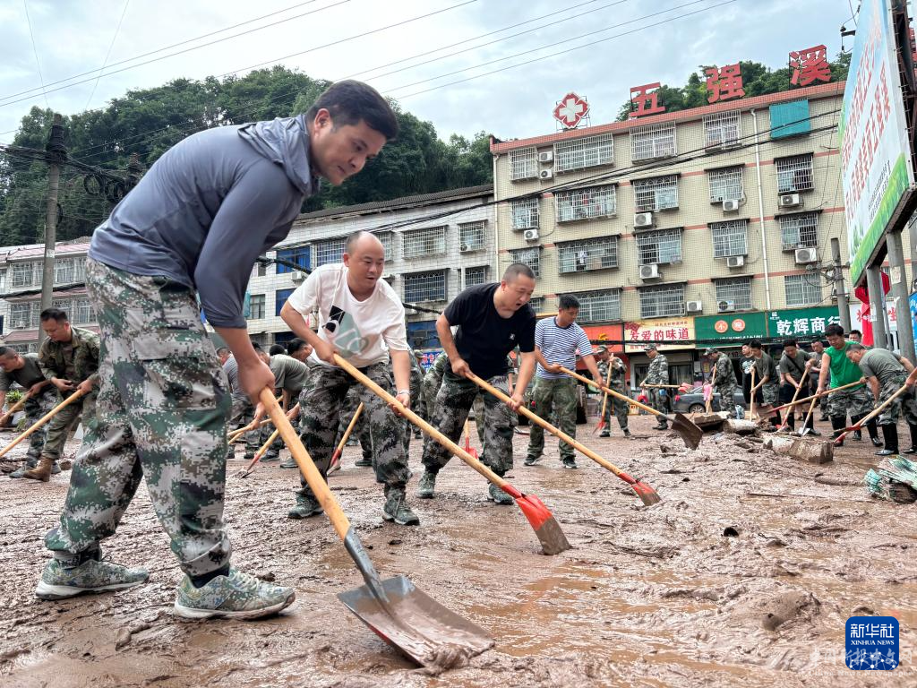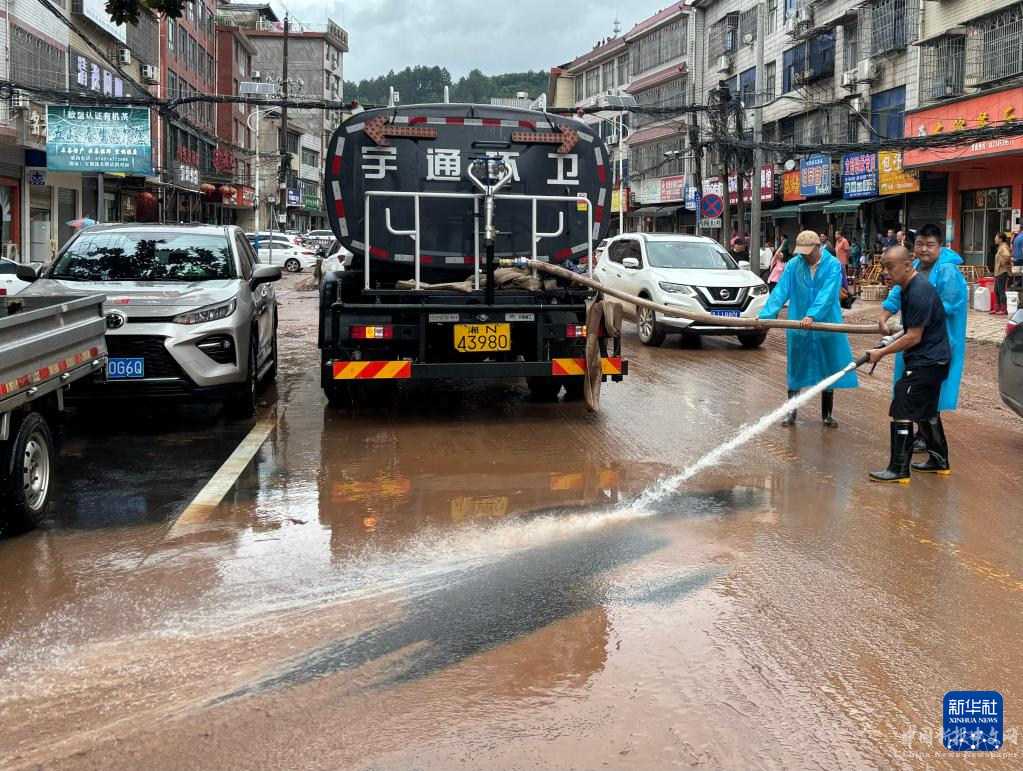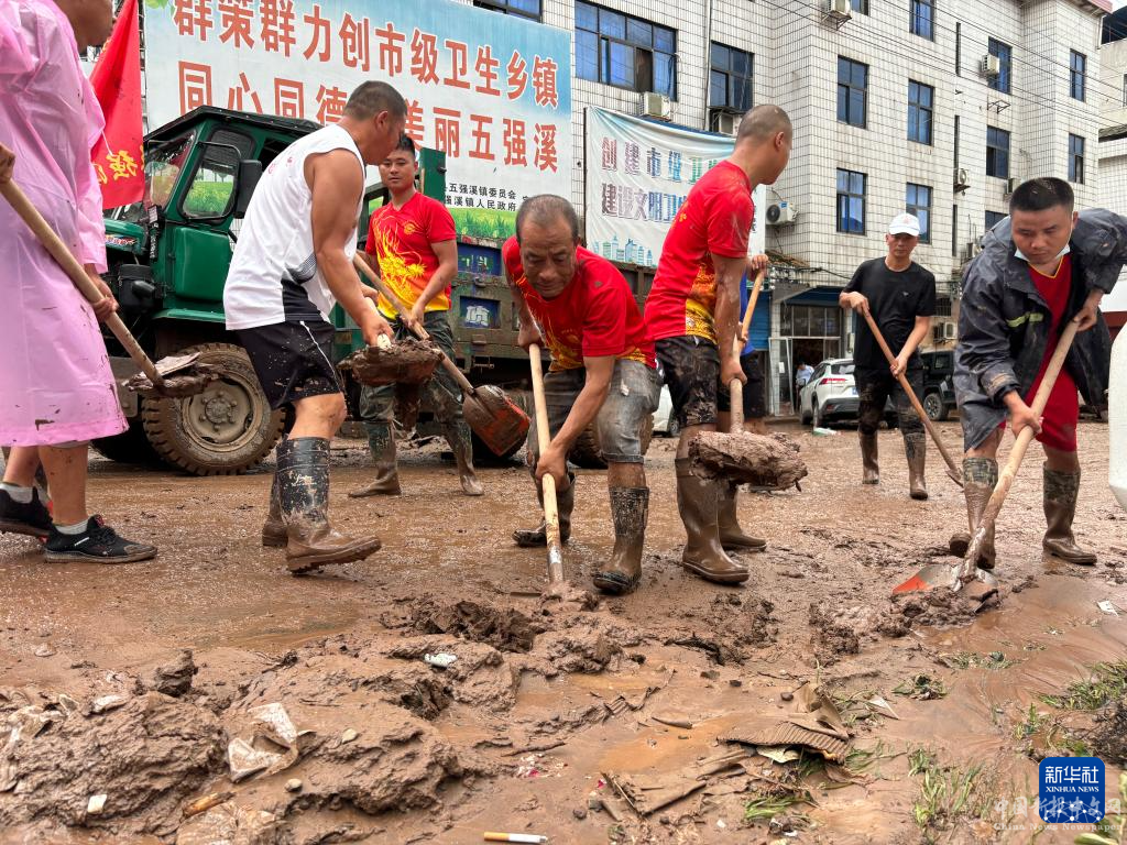 6月23日,沅陵縣五強(qiáng)溪鎮(zhèn)當(dāng)?shù)卣M織力量開展道路清淤作業(yè)(手機(jī)照片)。
