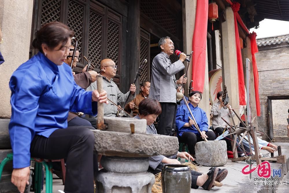 圖為省級(jí)非遺保護(hù)項(xiàng)目“中莊秧歌”。中莊秧歌的唱腔有[五更鼓]、[遼調(diào)]、[探親家]、[罵梁]等十幾種,根據(jù)不同的情節(jié)運(yùn)用不同的曲調(diào),朗朗順口。中國(guó)網(wǎng)記者 董寧 攝影