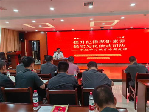 6月28日,黨組書記、院長張遠毅以《提升紀律規(guī)矩素養(yǎng),做實為民能動司法》為主題,結合學習《中國共產(chǎn)黨紀律處分條例》,從深刻認識黨紀學習教育基本要求及重大意義、黨紀學習教育對人民法院的特殊意義、全面從嚴推動人民法院工作高質(zhì)量發(fā)展等方面,以典型案例作反面教材,就如何增強廉潔司法意識,提高自身拒腐防變能力,給全院干警上了一堂生動的紀律黨課。