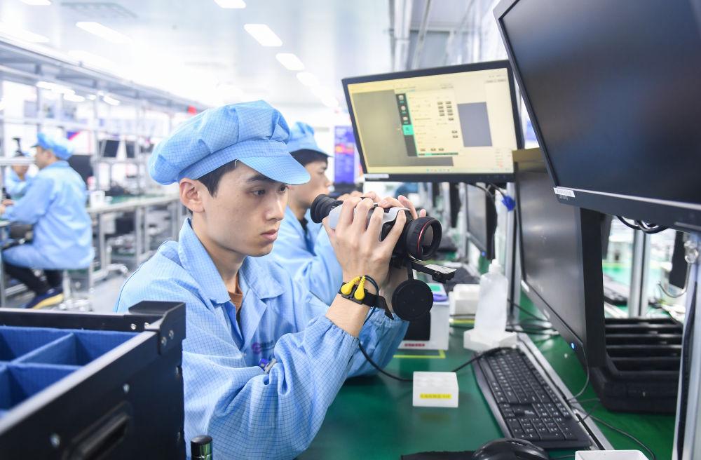 在位于武漢中國光谷的高德紅外智感科技產(chǎn)品生產(chǎn)線上,工作人員在對紅外熱成像儀進(jìn)行非均勻矯正(2月28日攝)。
