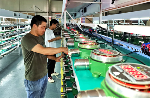 2024年7月11日,在位于安徽省合肥市廬江高新區(qū)的“專精特新”企業(yè)安徽省銳凌計(jì)量器制造有限公司的電磁流量檢測線上,員工正在檢測設(shè)備。