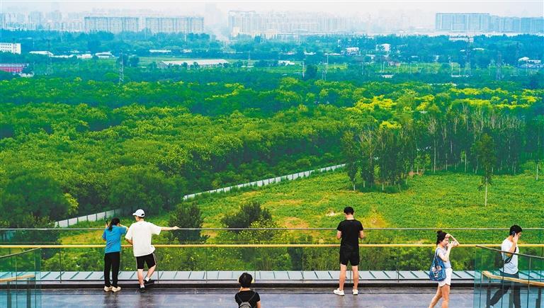 7月14日,市民在南苑森林濕地公園觀景臺游覽觀光。南森觀景臺是北京南部片區(qū)自然景觀制高點,與北部“奧林匹克塔”遙相呼應(yīng),成為城市文化新地標和網(wǎng)紅打卡地。
