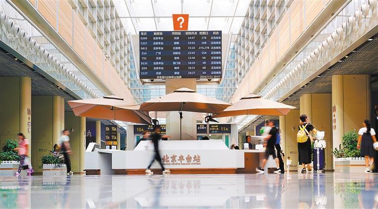 7月11日拍攝的北京豐臺站咨詢臺。北京豐臺站是亞洲最大的高速、普客綜合交通樞紐,已融入京津冀主要城市1小時至1.5小時交通圈。