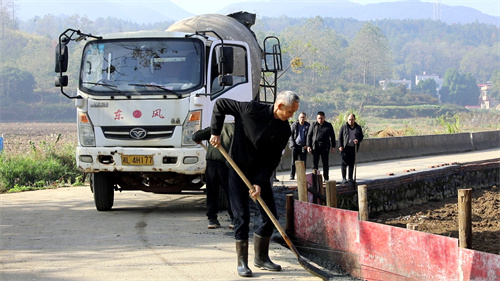 據(jù)了解,大鳳村通村公路是該村15個村民小組及毗鄰的廣東省連州市大路邊鎮(zhèn)馬占村等村民進出的主要通道。村道上原有一座長8米、寬3米的跨河通車橋梁,橋面較窄、坡度還有盲區(qū),給群眾出行帶來極大不便和安全隱患。董田山在妻子、子女的支持下,全家捐資7萬余元,將橋梁擴寬至7米,并把橋梁坡下100米的道路擴寬了1米多,消除了村民出行的安全隱患。負責施工的10余名施工人員都是當?shù)卮迕?,他們都是在聽聞董田山的善舉后,自發(fā)前來義務(wù)勞動的。2023年底,董田山再次捐資1.8萬元將該通村公路靠近橋梁的約200米長路段進行了拓寬。