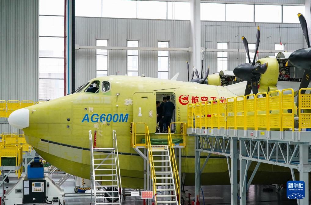 珠海“鯤龍”水陸兩棲飛機(jī)AG600M總裝生產(chǎn)線(2022年11月7日攝)。